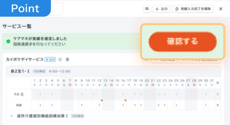 サービス事業所は確定した単位数がわかるので、ケアマネジャーと同じ単位数で国保連請求ができます。